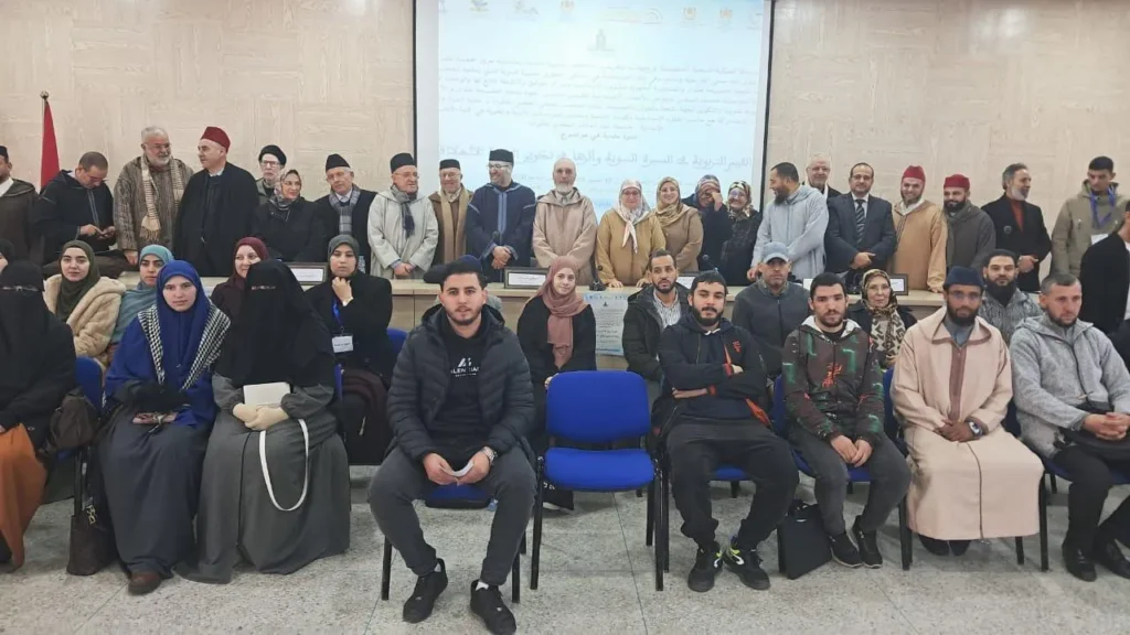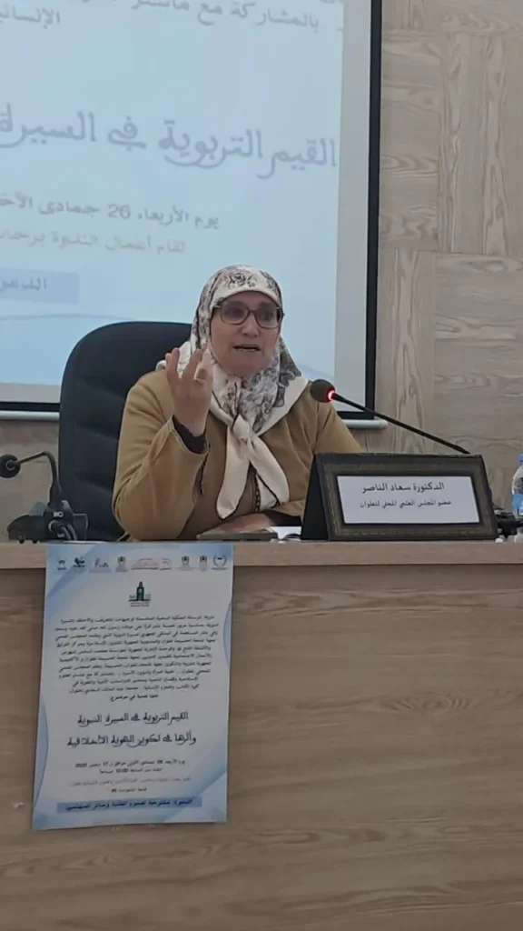 في إطار تنزيله لمضامين الرسالة الملكية السامية الخاصة بالاحتفال بمرور 15 قرنا على ميلاد خير البرية عليه الصلاة والسلام، وفي سياق تفعيل أنشطة الملتقى الجهوي السابع عشر للسيرة النبوية لعام 1447ه، تحت شعار: (نبي الهدى قدوتنا)، نظم المجلس العلمي المحلي بتطوان ـ خلية المرأة وشؤون الأسرة ـ بشراكة مع ماستر العلوم الإسلامية وقضايا التنمية، ومختبر الدراسات الأدبية واللغوية ، يوم الأربعاء 26 جمادى الأخرة 1447هـ/ موافق 17 دجنبر 2025م، بكلية الآداب والعلوم الإنسانية بتطوان ندوة علمية في موضوع: ” القيم التربوية في السيرة النبوية وأثرها في تكوين الهوية الأخلاقية” .