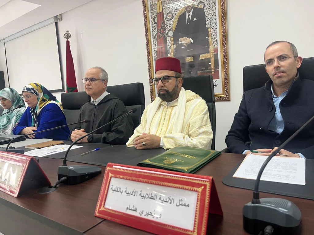 في إطار تنزيله لمضامين الرسالة الملكية السامية الخاصة بالاحتفال بمرور 15 قرنا على ميلاد خير البرية عليه الصلاة والسلام، وفي سياق تفعيل أنشطة الملتقى الجهوي السابع عشر للسيرة النبوية لعام 1447ه، نظمت خليتي شؤون المرأة وقضايا الأسرة التابعة للمجلس العلمي بتطوان والمجلس العلمي المضيق الفنيدق بشراكة مع فرقة البحث في الإبداع النسائي والأندية الطلابية بالكلية يوم الثلثاء 20 رمضان 1447هـ/ موافق 10 مارس 2026، بكلية الآداب والعلوم الإنسانية بتطوان ندوة علمية في موضوع: “المنهج النبوي في بناء شخصية المرأة “